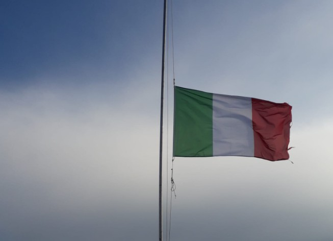 Bandiere a mezz'asta per onorare la memoria dei tre carabinieri morti.